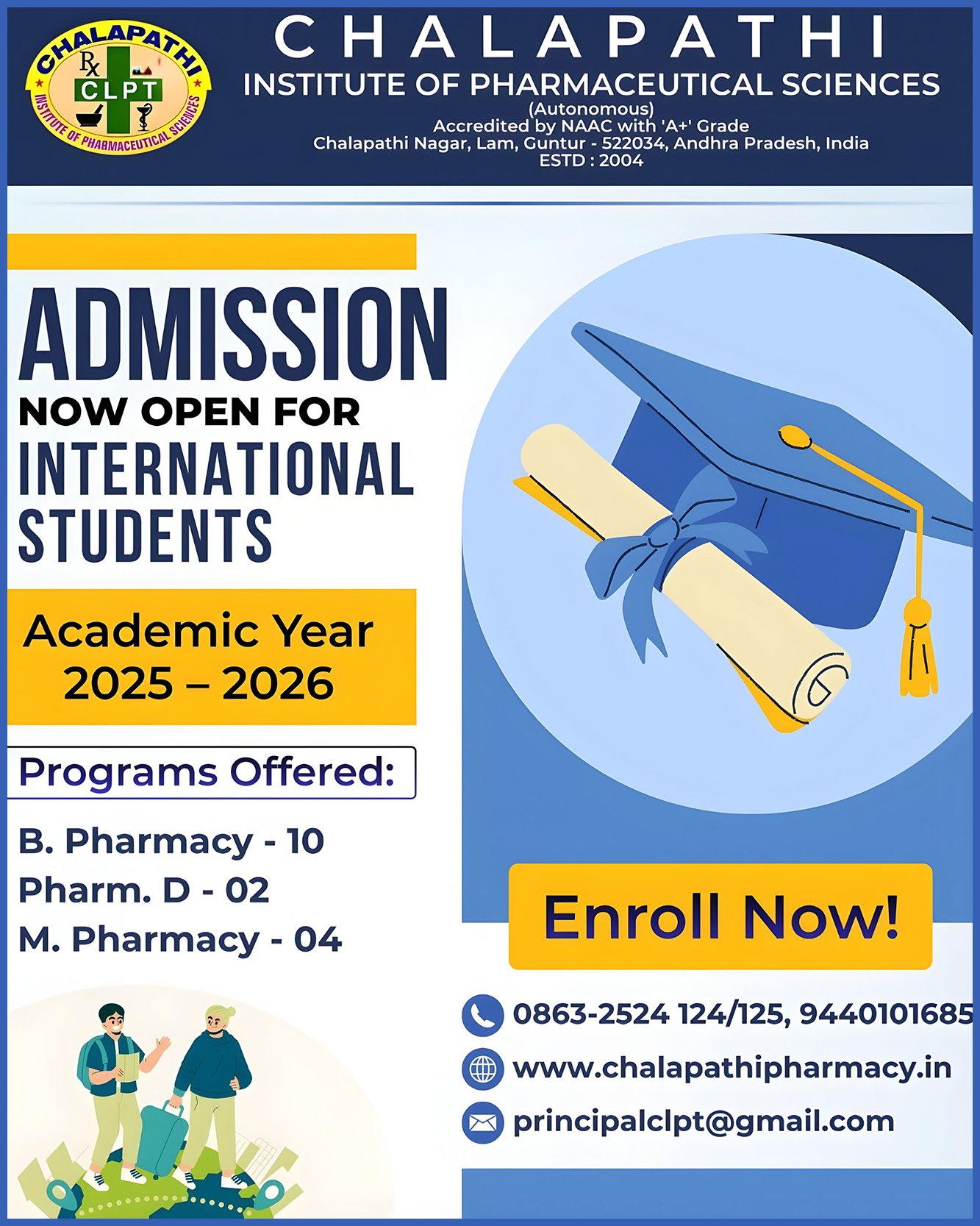 Website: www.chalapathipharmacy.in, Email id: principalclpt@gmail.com